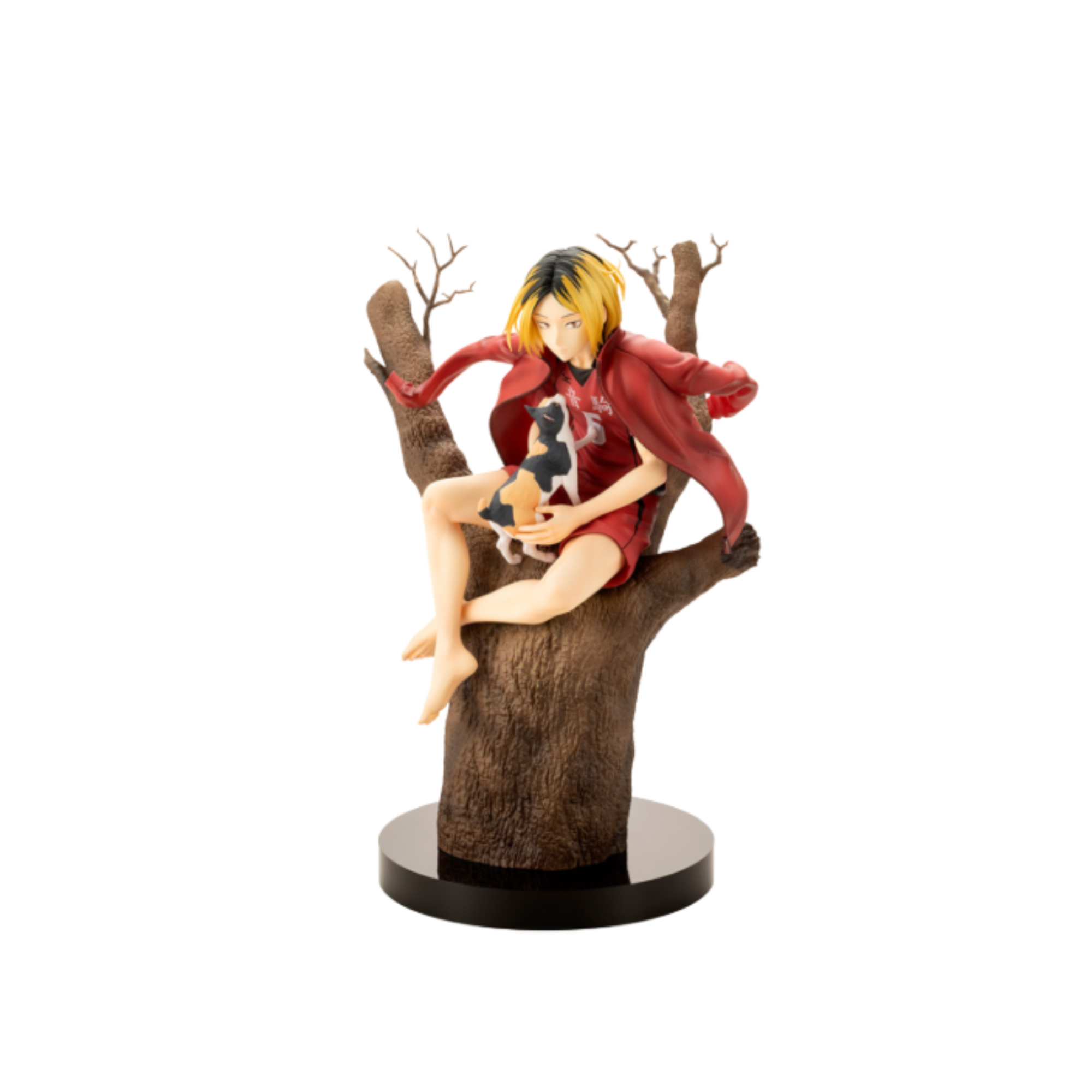 Kenma Kozume comes to life based on an illustration by Takahiro Chiba! Seated at the top of a tree with a calm gaze, this figure fully recreates the original visual.
