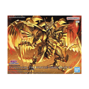 The Winged Dragon of Ra,one of the three phantom gods from "Yu-Gi-Oh! Duel Monsters," gets a new "Figure-rise Standard Amplified" model-kit release from Bandai! By expanding the wings to the front, the sphere mode of the Amplified interpretation can be reproduced; the jewel on its forehead and its tongue are expressed with sophisticated parts division for precise color coding. The golden parts are made in two colors for a heightened level of detail, and finely movable parts allow flexible movement (the mouth can open and close, and the tongue can move). The majestic wings have a total width of about 40cm when assembled for a powerful presence! A display base and two types of joint parts are included too. Order this beautiful beast for your own collection today!