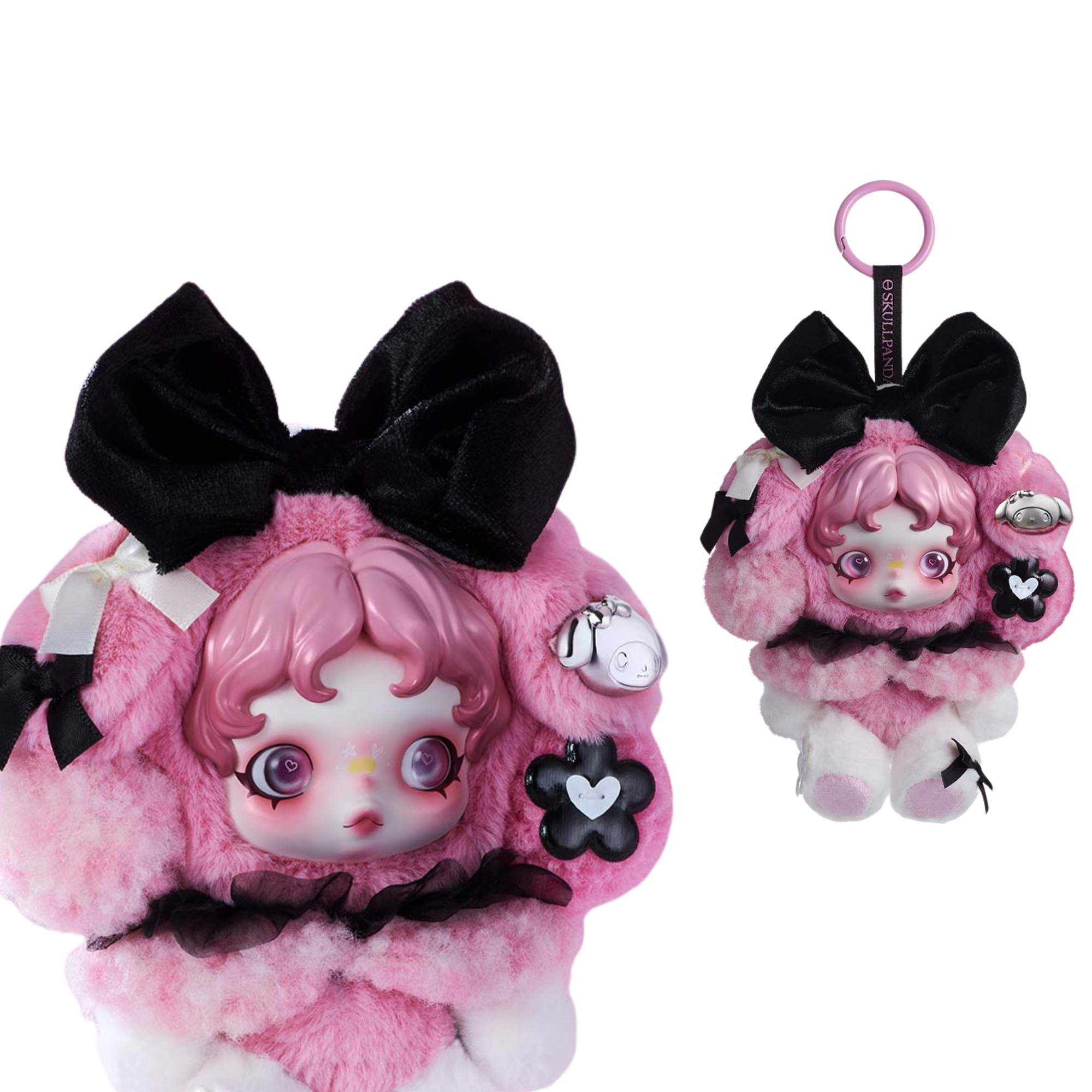 A unique collaboration where SKULLPANDA's distinctive style meets the charm of the iconic character My Melody . This plush toy strikes the perfect balance between an artistic, slightly dark vibe and a sweet, charming kawaii aesthetic.