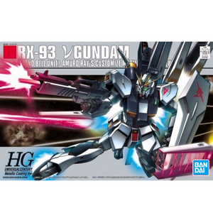 When Bandai finally offered the RX-93 Nu Gundam as an HGUC kit, it wowed people with its superb quality. Now this sharply detailed kit is back, this time in a Metallic Coating Version! Amuro Ray's last piloted Mobile Suit in "Char's Counterattack" features polycap-jointed articulation and is fully equipped with two types of beam sabers, a beam rifle, a new hyper bazooka, and of course its distinctive fin funnels, which are detachable from its back and can be set in firing mode. Stickers are provided to add detail to the completed model.