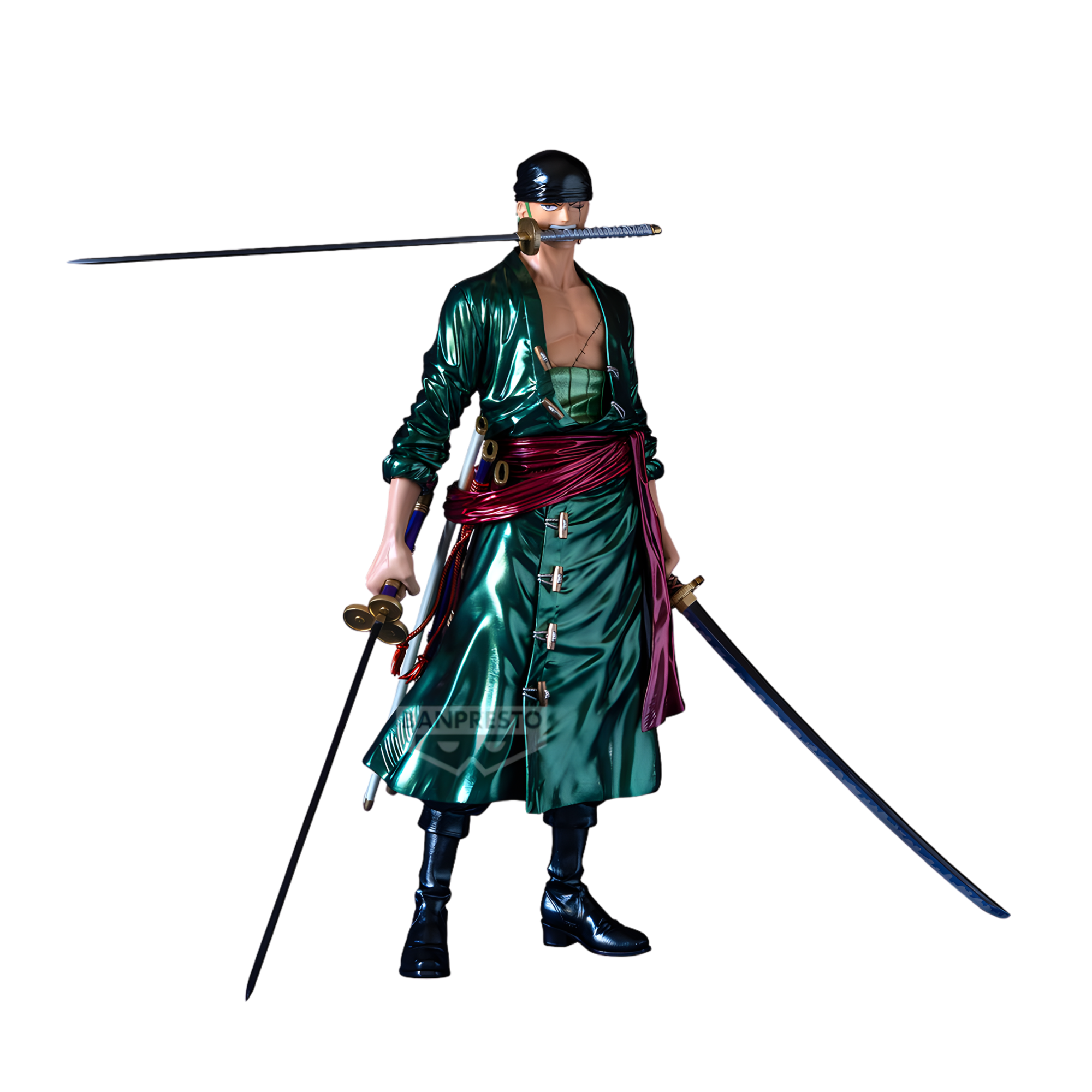Bring the legendary swordsman to life with this stunning Roronoa Zoro figure from Banpresto's Premium The Metallic collection. Featuring premium metallic finishes that capture every detail of the iconic One Piece character, this collectible showcases Zoro's fierce determination and mastery of the blade. Perfect for anime enthusiasts and dedicated collectors, this high-quality figure makes an impressive display piece that celebrates one of the series' most beloved characters. Add this premium collectible to your collection today.
