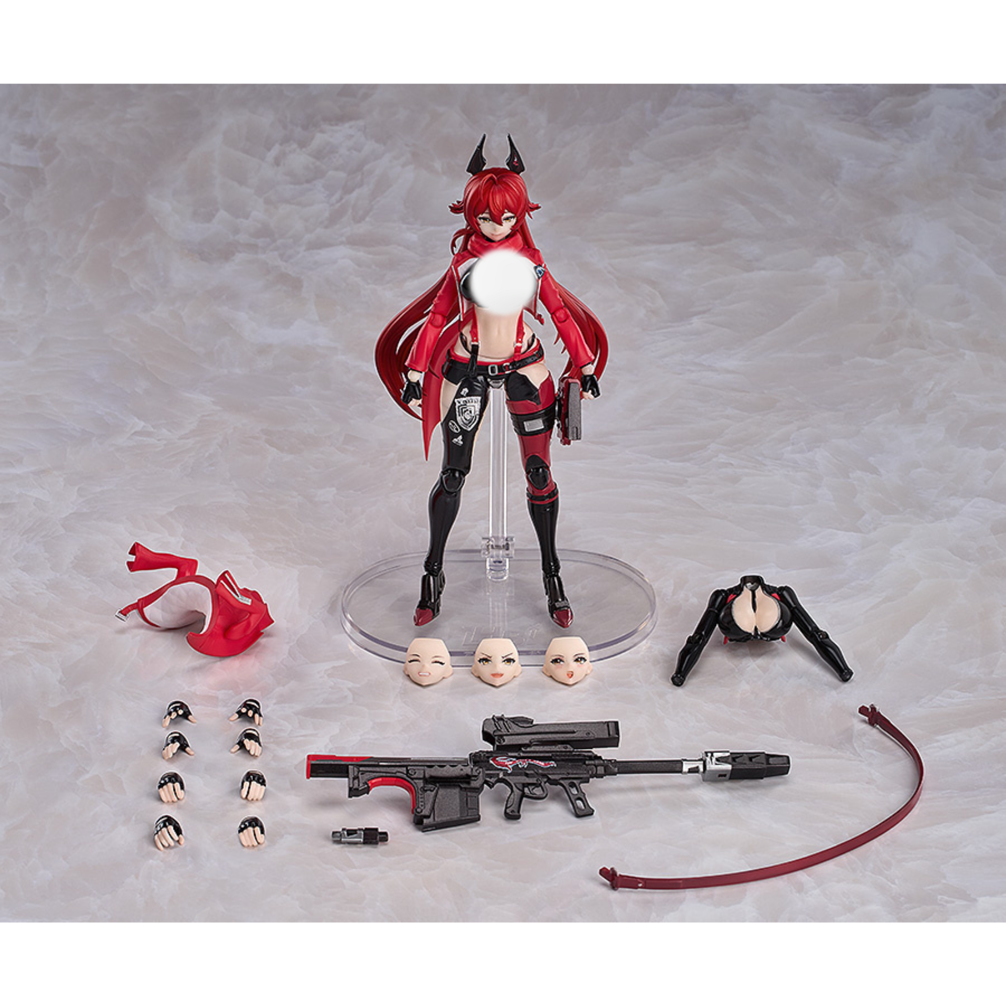 Red Hood from the popular smartphone game "Goddess of Victory: Nikke" joins the "Hyper Body" action-figure series from Good Smile Company! Four interchangeable faces are included: a smile, a pleased face, a shout, and a blush. Her weapon Wolfsbane is included too, as is a separate upper body part. She can be displayed with or without the coat using the interchangeable upper body part. A base for display is also included, as are five pairs of interchangeable hands. You'll love having Red Hood in your collection -- order her today!