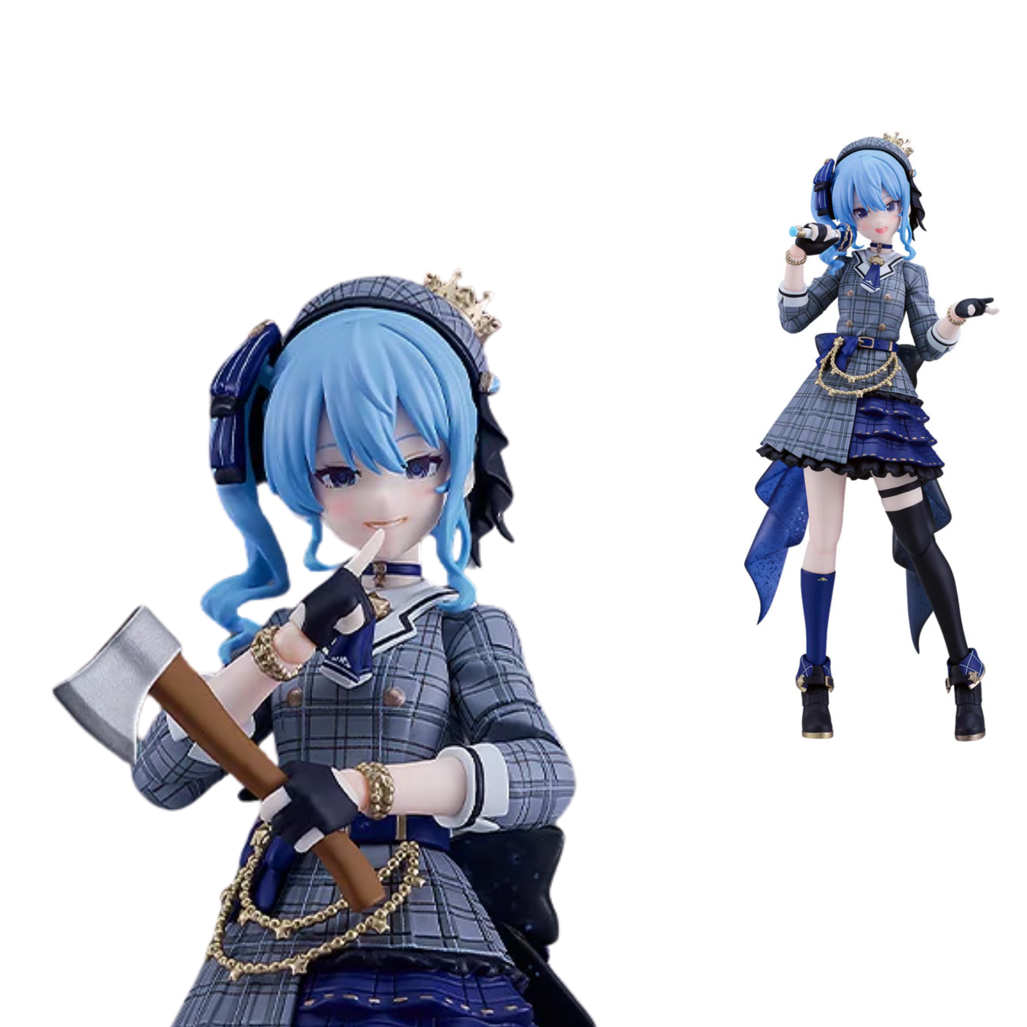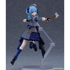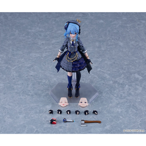 Hoshimachi Suisei, the "diamond in the rough" from the popular virtual YouTuber group "hololive production," joins the "figma" action figure series from Max Factory! Her three interchangeable faces include a singing expression, a smile, and a psychopathic face; she also has a microphone, a container of apple juice, and an axe! A base for display is also included. Order her for your own collection today!