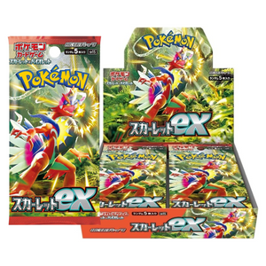 The Japanese Pokémon TCG Scarlett EX Booster Box is part of the Scarlet EX expansion from the Scarlet & Violet era. The first set of this new generation is finally here, featuring a blend of classic and new Pokémon from the Paldea region, along with stunning new artwork and dazzling foils.