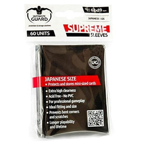 High quality matte card sleeves, optimized for tournament play, for all japanese-sized gaming cards, like Yu-Gi-Oh!™, Naruto™, Dragon Ball™ mini-sized cards and others. 60 sleeves per pack.