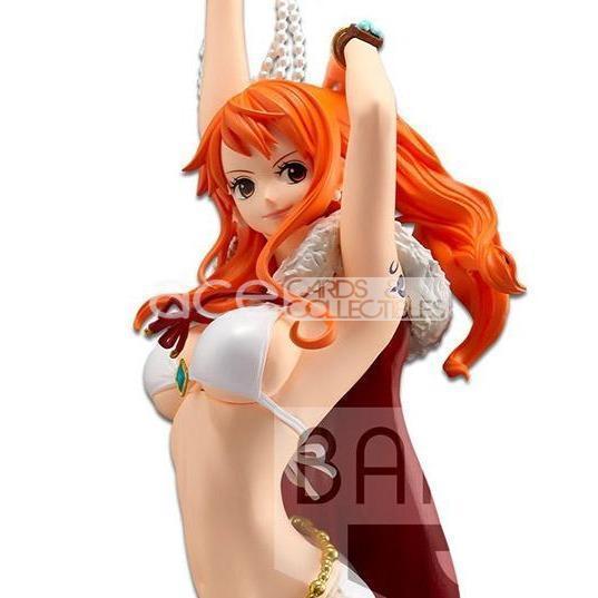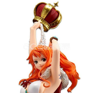 Nami joins the Flag Diamond Ship series once again! Based on the release of One Piece: Stampede, Nami wears a bikini with a red cape, holding her crown above her head and posed to join your collection! This figure stands about 9 inches tall in total.